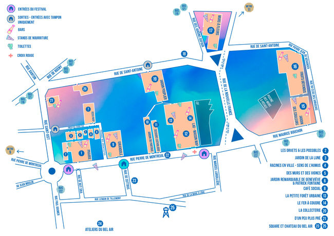 Nous, habitantEs et amoureuxSEs de ce lieu de verdure, avons créé cet événement bénévolement pour vous accueillir au cœur de cette friche agricole, où l'on produisait des pêches appréciées pour leur saveur dans toute l'Europe, et qui témoigne du passé prestigieux de Montreuil.